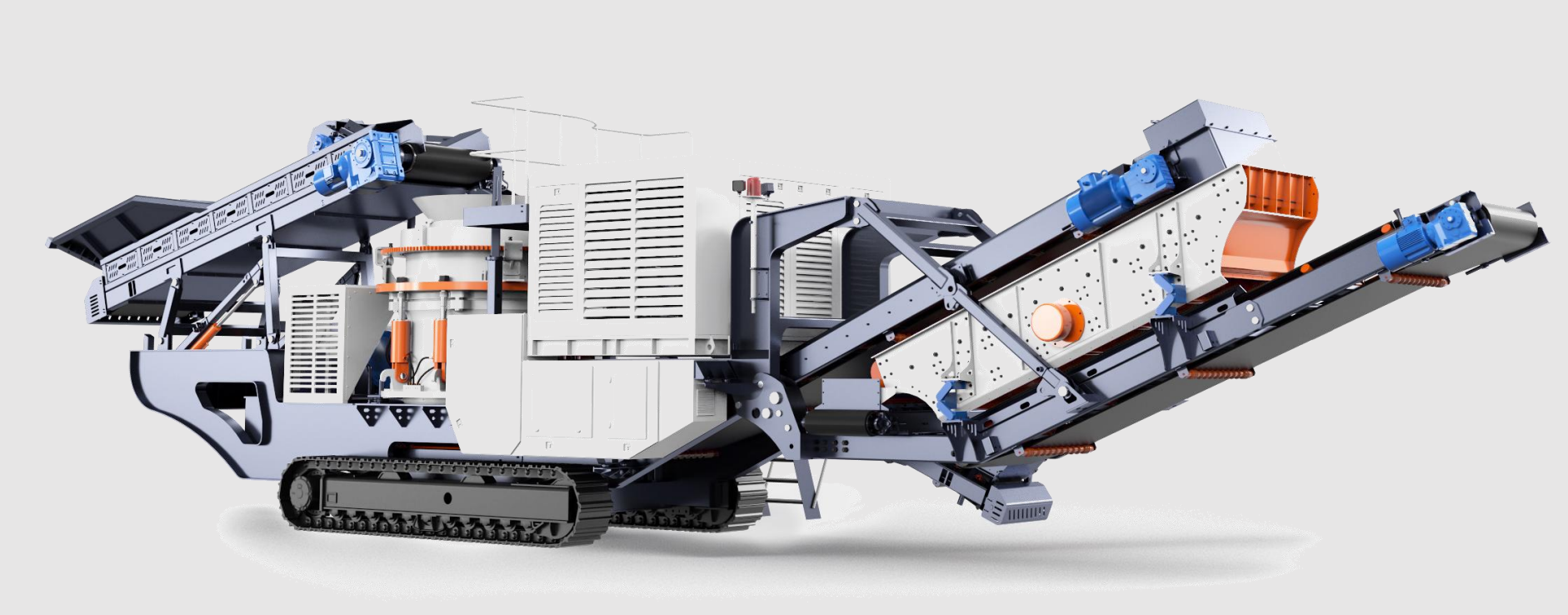 Nuestra trituradora de cono hidráulica multicilíndrica móvil sobre orugas es una trituradora totalmente automática con un alto grado de inteligencia y automatización. El diseño del chasis completamente hidráulico, y el sistema autopropulsado hace posible comandar la marcha por control remoto, comúnmente usada en laderas y caminos escarpados, con fuerte potencia, adecuada para la operación de subida de pendientes. Se encuentran entre las trituradoras de cono más versátiles y fiables del mercado. Todos los modelos son compatibles entre sí, por lo que son adecuados principalmente en la vinculación con trituradoras primarias y plantas de cribado., además de ser igualmente productivos trabajando como unidades independientes. Consumo de diésel: alrededor de 40L por hora, depósito de aceite 800L